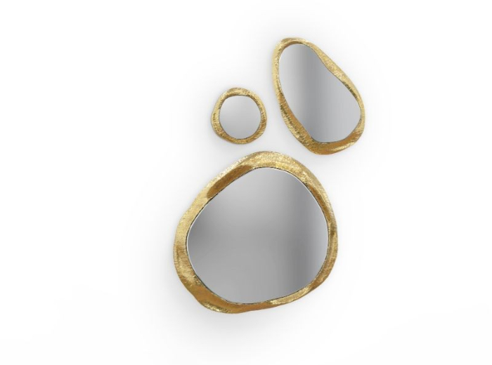 Composed by a set of three mirrors, Halo Wall Mirror allows different displays and creative settings. The big mirrors with different shapes have an elegant gold frame accent, perfect for contemporary interiors and elegant rooms, from stylish bedrooms to upscale halls or living rooms.
