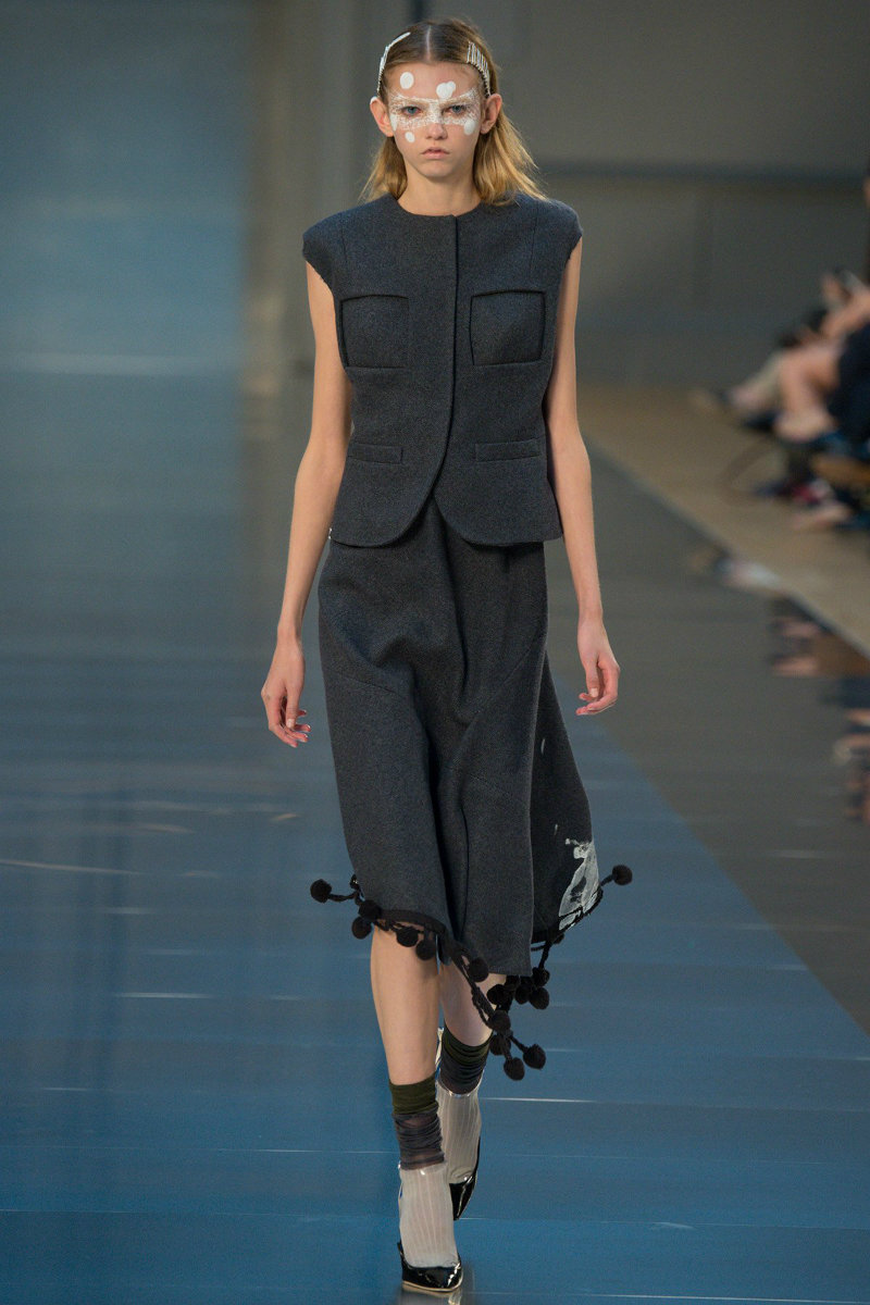 He applied to the face of his models some paint, bright cerulean blue and muddier tones like grey, off-white or blue. Nevertheless, Maison Margiela is well-known for obscuring the faces of the models. It’s a daring attempt to direct the public’s attention to the clothes, not to the models and their beautiful symmetric faces.