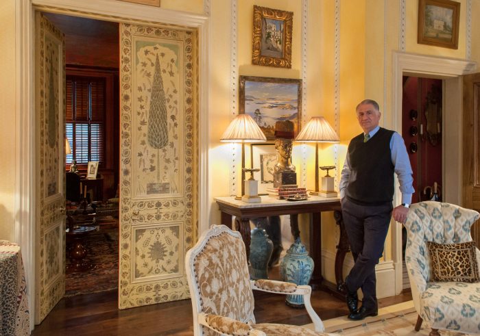 Renowned for his layered and opulent interiors, celebrated designer Alidad relies on his love of pattern, colour and deep knowledge of history and art to create spaces with intricate bespoke detail and timeless appeal. And yet this was not always his career path. After a halcyon childhood in Iran, his family relocated to London where he first studied statistics and computer science. He then followed his passion and enrolled in a course at Sotheby’s, staying on to become the youngest-ever director of the auction house’s Islamic Art department. After eight years he realized his talents and interest lay more in the realm of interior design and in 1985 founded his eponymous firm with his own apartment as his first project. Please join Susanna and me in London for a visit with Alidad in his sumptuous Mayfair flat! Don’t worry, CovetED will guide you!