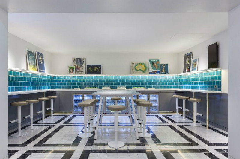 The Floor, designed with carefully considered proportion, gives the experience of walking though a series of rooms in a fabulous women’s boudoir suite to discover a collection of precious gems rather like the finds of a women’s Grand Tour. Similar to a coveted jewelry box, it is furnished with rarefied materials and semi precious stones such pinky rose quartz, Amazonian malachite, through to fine veneers in figured sycamore and bird’s eye maple. Throughout, illustration is used, taking inspiration from Fortnum & Mason’s archives.