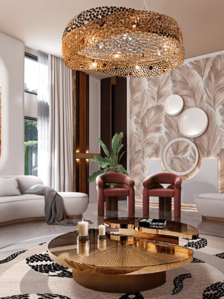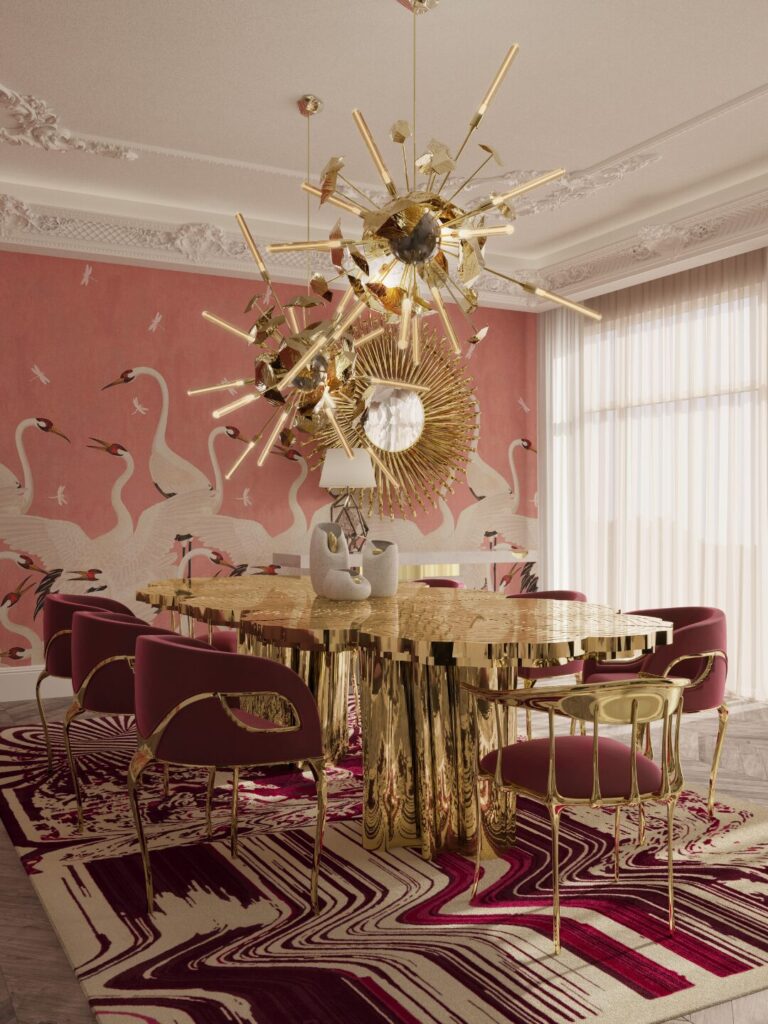 This piece fuses KOKET’s bold femininity with Boca do Lobo’s refined craftsmanship. The result? A daring chandelier that redefines luxe dining room lighting.