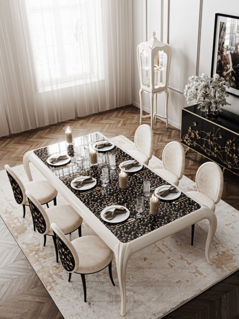 In the world of luxe dining room design, the dining space is more than just a place to eat—it’s where style, celebration, and seduction come together. With the right pieces, your dining room transforms into a stage for unforgettable moments. At KOKET, bold glamour and exquisite craftsmanship elevate each interior, turning everyday meals into luxurious experiences. Discover 10 exquisite interiors that embody sculptural elegance, timeless beauty, and modern sophistication.