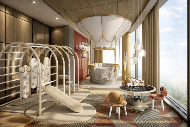 A world of imagination thoughtfully crafted, the children’s bedroom is where creativity and comfort coexist. The space is composed in soft, warm tones and gentle curves, creating an atmosphere that feels both nurturing and delightfully whimsical. At its heart, the Fantasy Air Balloon Bed is like a dreamlike retreat, offering a sense of enclosure and wonder, while the Bubble Gum Gym invites exploration and movement. When it comes to learning, the Marshmallow Activity II Table and Bonbon Chairs are there for every study session. Balanced by calm materials and curated detailing, the room avoids excess while celebrating joy.