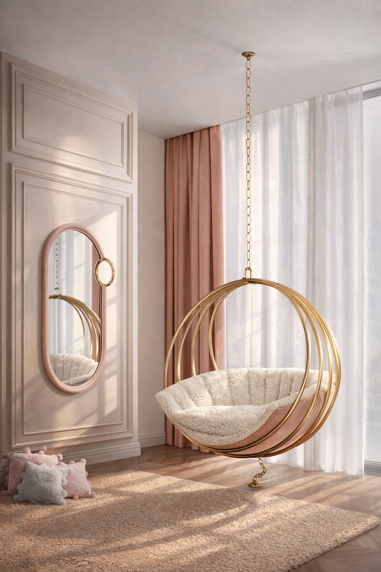 Delicately suspended as if lifted by a sprinkle of golden fairy dust, the Tinkerbell Suspension Chair captures the magic of flight and freedom. Inspired by the whimsical spirit of Neverland, it creates a floating sanctuary where imagination can soar. Its graceful design and refined polished brass glossy finish bring a luminous, weightless presence to any room. Both playful and sophisticated, it’s a place to dream, read and drift among the stars.