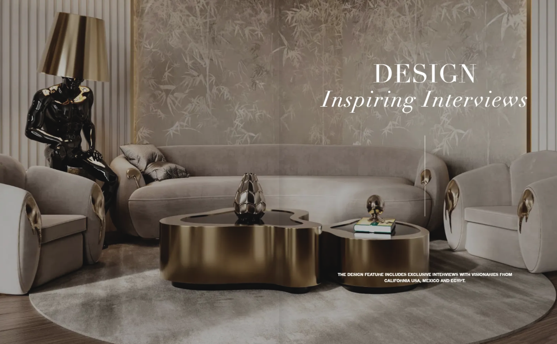 Discover insights from the Inspiring Interior Designers feature, which includes exclusive interviews with visionary talents from around the globe, including Portugal, Egypt, India, and the UAE.