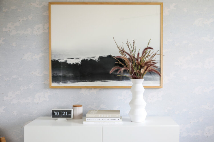 If you have white walls or even a white sideboard, our idea would be to add some statement black on framed art or even a vase. If you add a clock with a black background is already a huge step towards the black and white living room of your dreams!