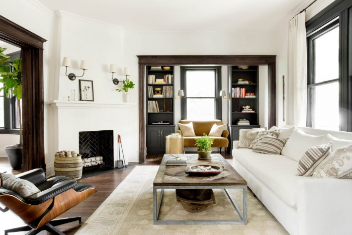 A black bookcase or a mid-century black leather armchair can really bring that black and white living room look you’ve been looking for. It’s the small details that make a difference and sometimes only a statement piece can go a long way in achieving the look you’re searching for.