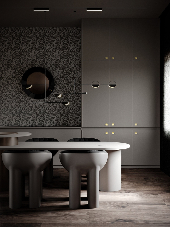 As we love, a modern dining room design portrays so well the colours that are never out of date, gold and grey.