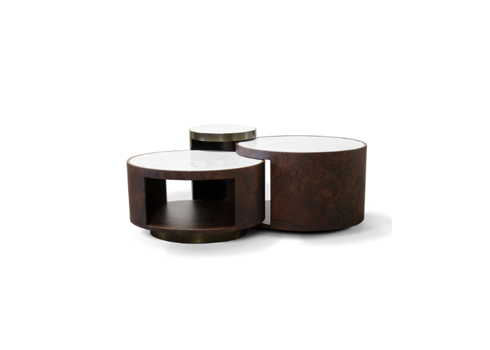 The circular shapes and round design of this elementary center table is inspired by the mountains surrounding the Guatemalan coffee plantation in Antigua City. The height of the mountains reaching the skies and emerging from the plains where some of the world’s best coffee beans are grown inspired the setting of the modular pieces for this item. With a walnut circular body and a carrara marble top, this center table besides presenting a versatile decoration assemble has also a fine inox dark bronze strip that provides it with a modern appeal.