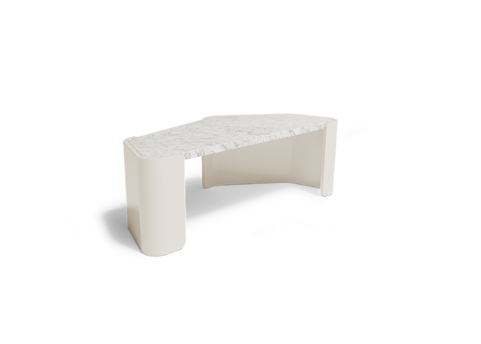 Paying homage to one of the biggest producers of coffee in the world, Brazil, this wide centre table resembles the endless fields and plantations in the country. This version uses a marvellous Carrara marble top over a cream lacquered base. Its strict lines over fluid and amorphous shapes make an interesting and compelling design suitable for any aesthetic.