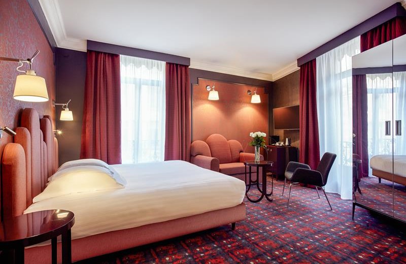 Its 41 rooms, 3 suites, bar and café mix traditional Haussmanian architecture (its lavish ceiling mouldings, decorative staircases and stained glass windows) with an unexpected and contemporary decorative beat.