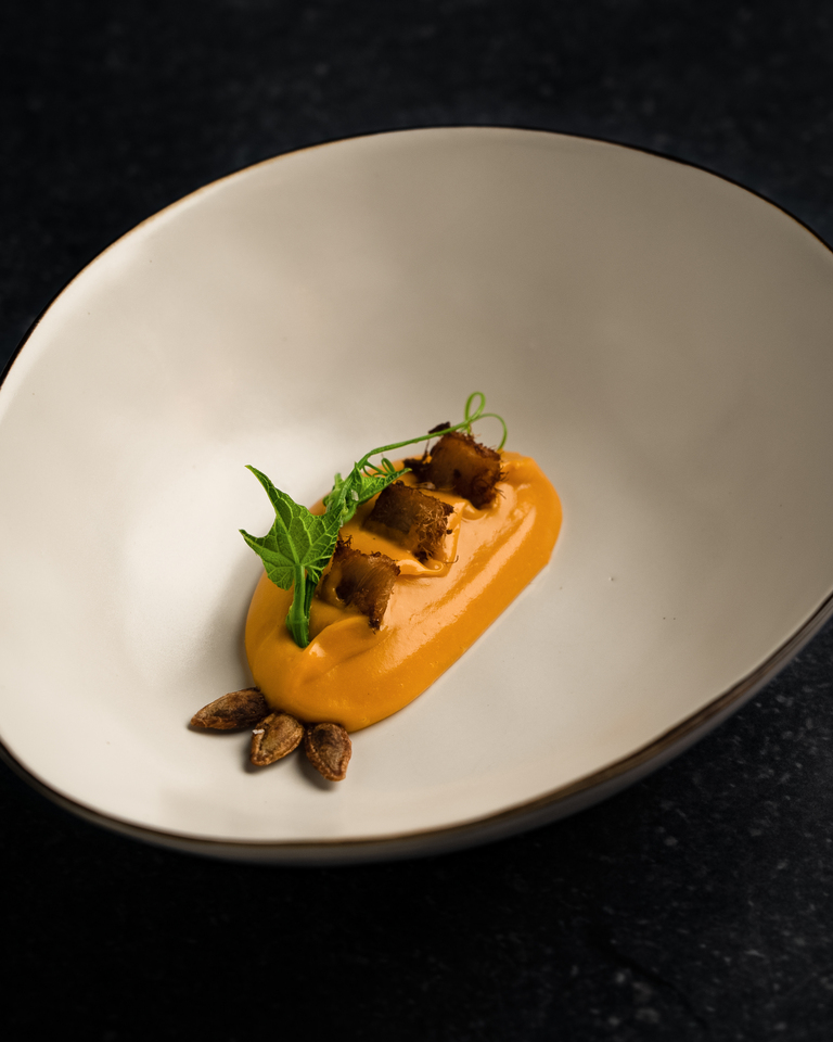 Step inside and you feel it immediately: a sense of motion without chaos. The space carries the warmth of metal, wood, and fire, as if every surface has absorbed years of experimentation. There’s an intimacy here, the kind that makes you lean in—toward the table, toward your companions, toward the plate set carefully in front of you. Nothing feels accidental. Everything feels earned.
